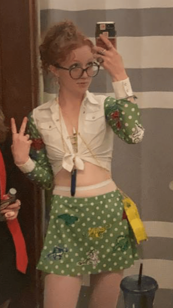 Halloween 2022, slutty Ms. Frizzle, I didn’t get any good pictures, there are dinosaurs on the skirts and sleeves. :)