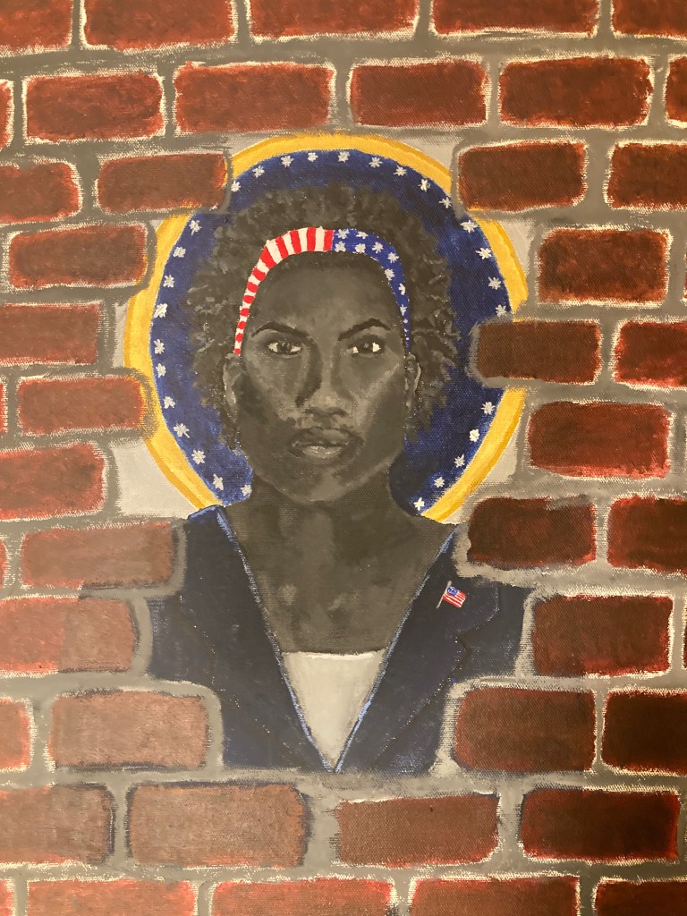 acrylic on canvas, 2018. Painting with black and white and color for art class in high school.